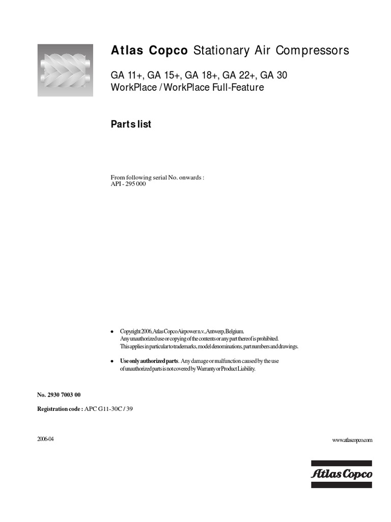 Atlas Copco Ga 11 To Ga 30 Part List Pdf Washer Hardware Electrical Connector
