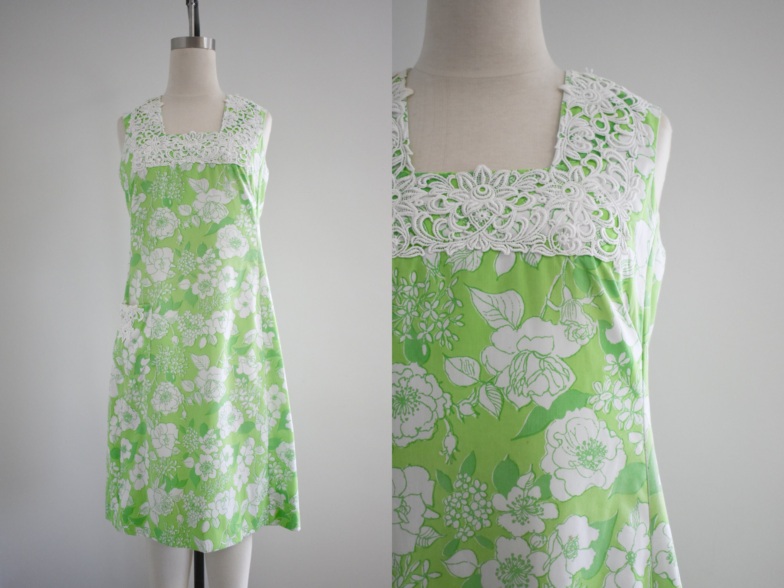 1960s Lilly Pulitzer Green Floral Print Shift Dress Etsy Uk